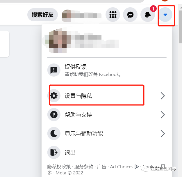 step1:?點擊右上角的倒三角——選擇【設(shè)置與隱私】——選擇【設(shè)置】