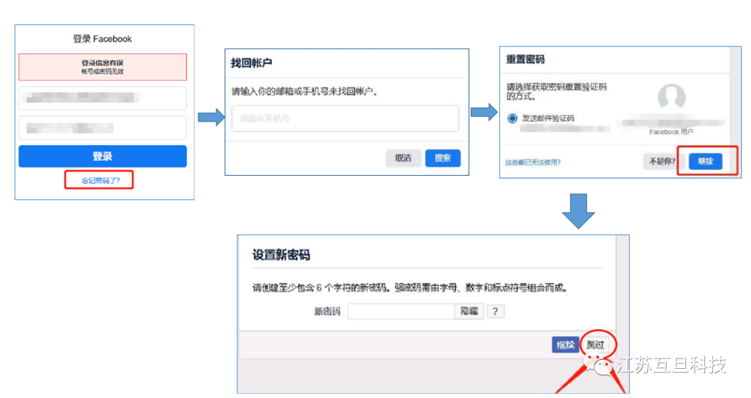 如果賬戶名和密碼都無誤,但FB卻依舊提示有誤無法登陸賬戶,一般是因為FB識別到您的科學上網環境IP、設備等發生了變化,只需要按照上述四個步驟走,基本都能成功。