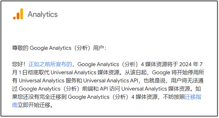 從2024年7月1日起,Universal Analytics完全停止服務(wù),標(biāo)志著Google Analytics 4(GA4)的全面接管。這一變動意味著所有原有的UA媒體資源將無法通過Google Analytics前端和API進(jìn)行訪問。