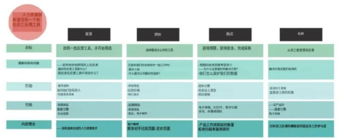 應(yīng)用“完成任務(wù)框架”(Jobs To Be Done framework),并繪制出理想客戶的典型用戶旅程。然后,組建一個專家委員會來集思廣益,提出能夠幫助理想客戶完成任務(wù)的內(nèi)容創(chuàng)意。